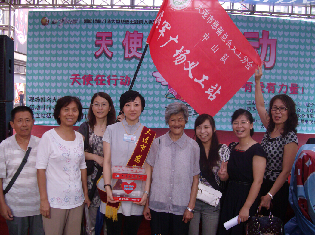 2009年9月海军广场义工在大商步行街参加辽宁电台与大连电台天举办的“使在行动”筹集资金,救助患白血病的孩子。